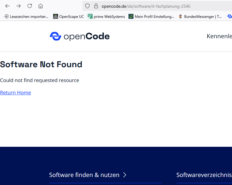 wir haben vermutlich gerade ein ähnliches Problem. Der Eintrag für den Quellcode unserer IT-Fachplanung ist zwar im Softwareverzeichnis gelistet. Der Klick auf die entsprechende Kachel führt aber zu einer Fehlerseite mit der Meldung: